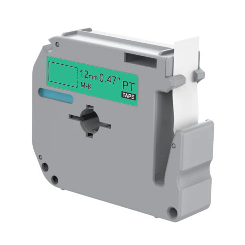 This letter tape is suitable for Brother P-touch belt terting systems. This tape allows you to print black characters on a green background. The tape is 8 meters long and 12 mm wide. This size is suitable for applying lettering with a maximum text size of 9 mm.